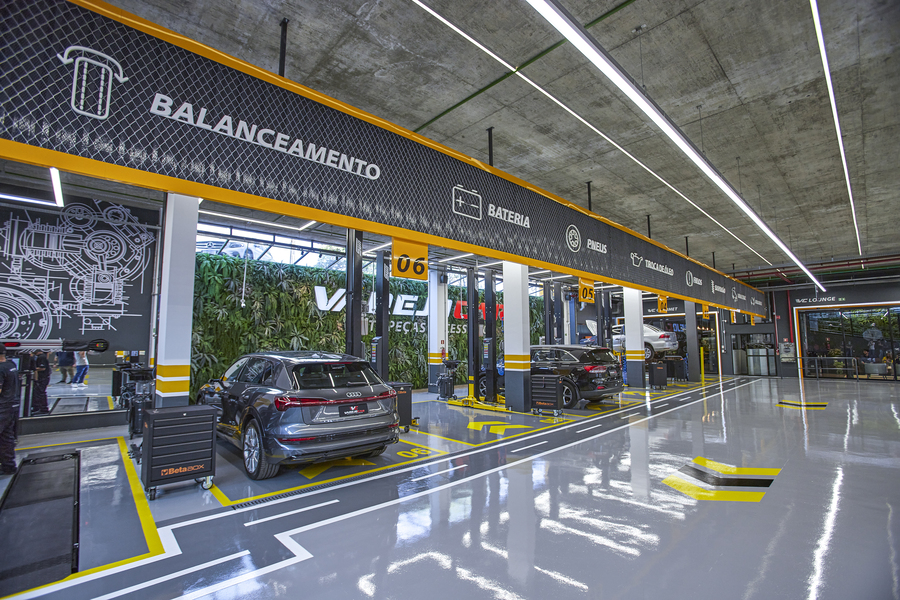São três pisos, com um espaço de autocenter com capacidade para atender até 12 automóveis simultaneamente. A mão de obra especializada, em uma equipe composta por 20 profissionais, oferece alinhamento, balanceamento, revisão, troca de pneus, instalação de acessórios, entre outros serviços, para veículos de todas as marcas.