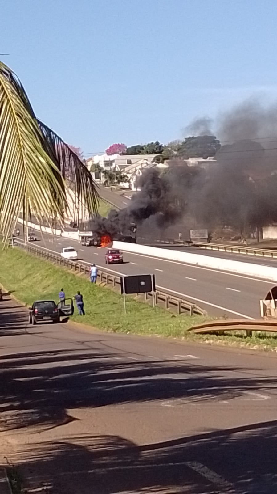 Uma carreta pegou fogo nesta quinta-feira, 16, no Contorno Norte, em Maringá. A situação ocorreu próximo à Avenida Tuiuti – veja abaixo um vídeo que circula nas redes sociais e que foi encaminhado pelos Bombeiros. A ouvinte da Maringá FM, Glaucia Lubke, também encaminhou um vídeo – assista abaixo.
