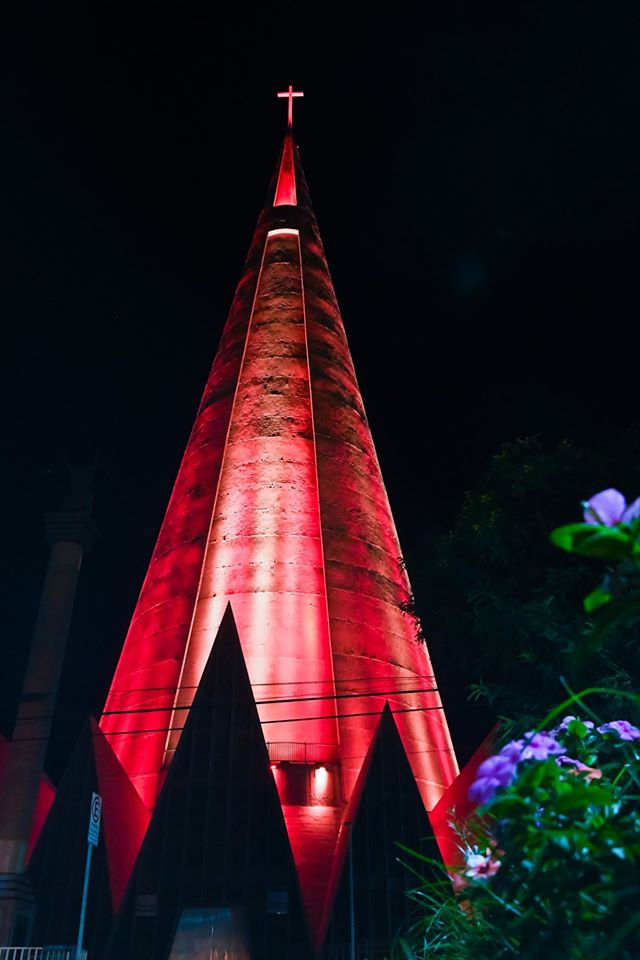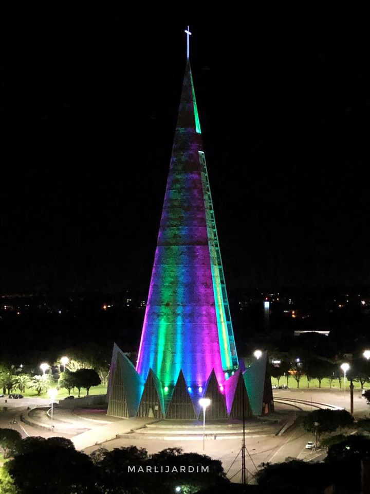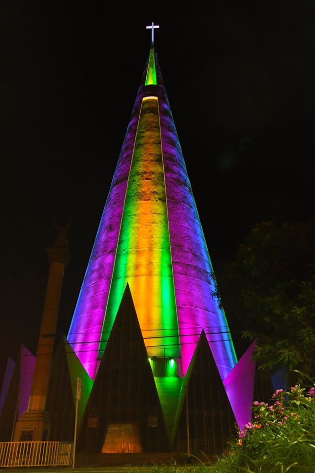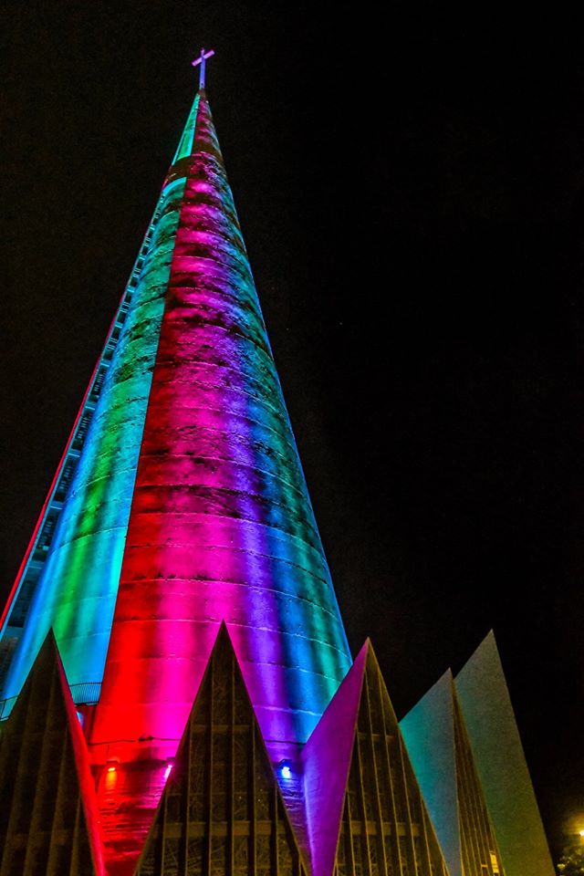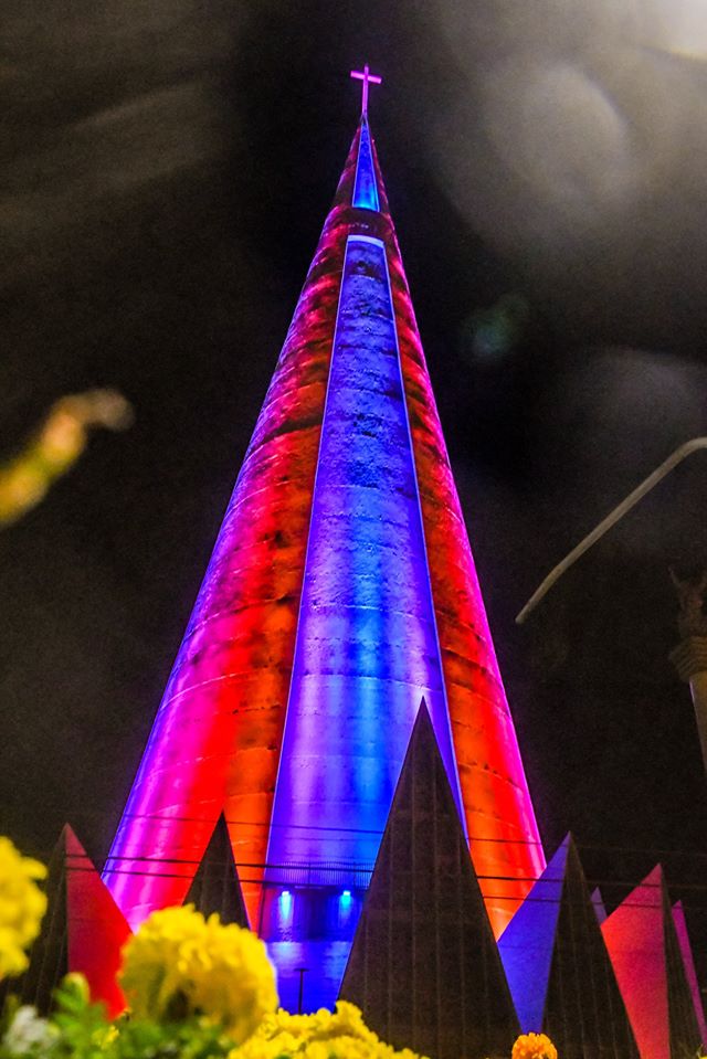 Catedral de Maringá está colorida; saiba o motivo e veja vídeos
