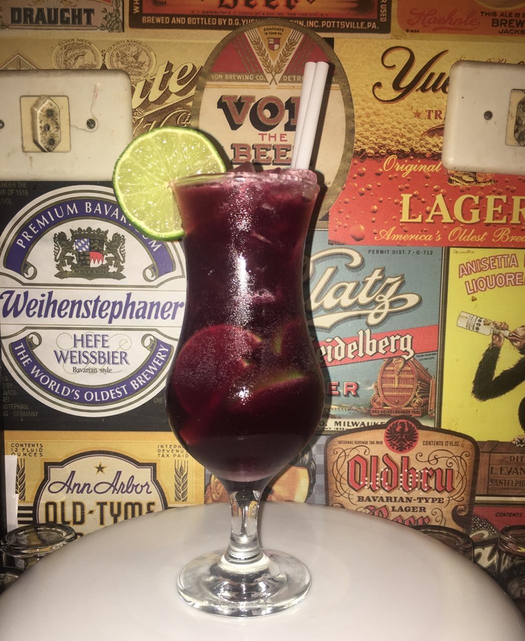 O drink é uma especialidade do Bar do Zé e feito com limão, gelo, açúcar, cachaça e vinho. A decoração fica por conta da rodela de limão.