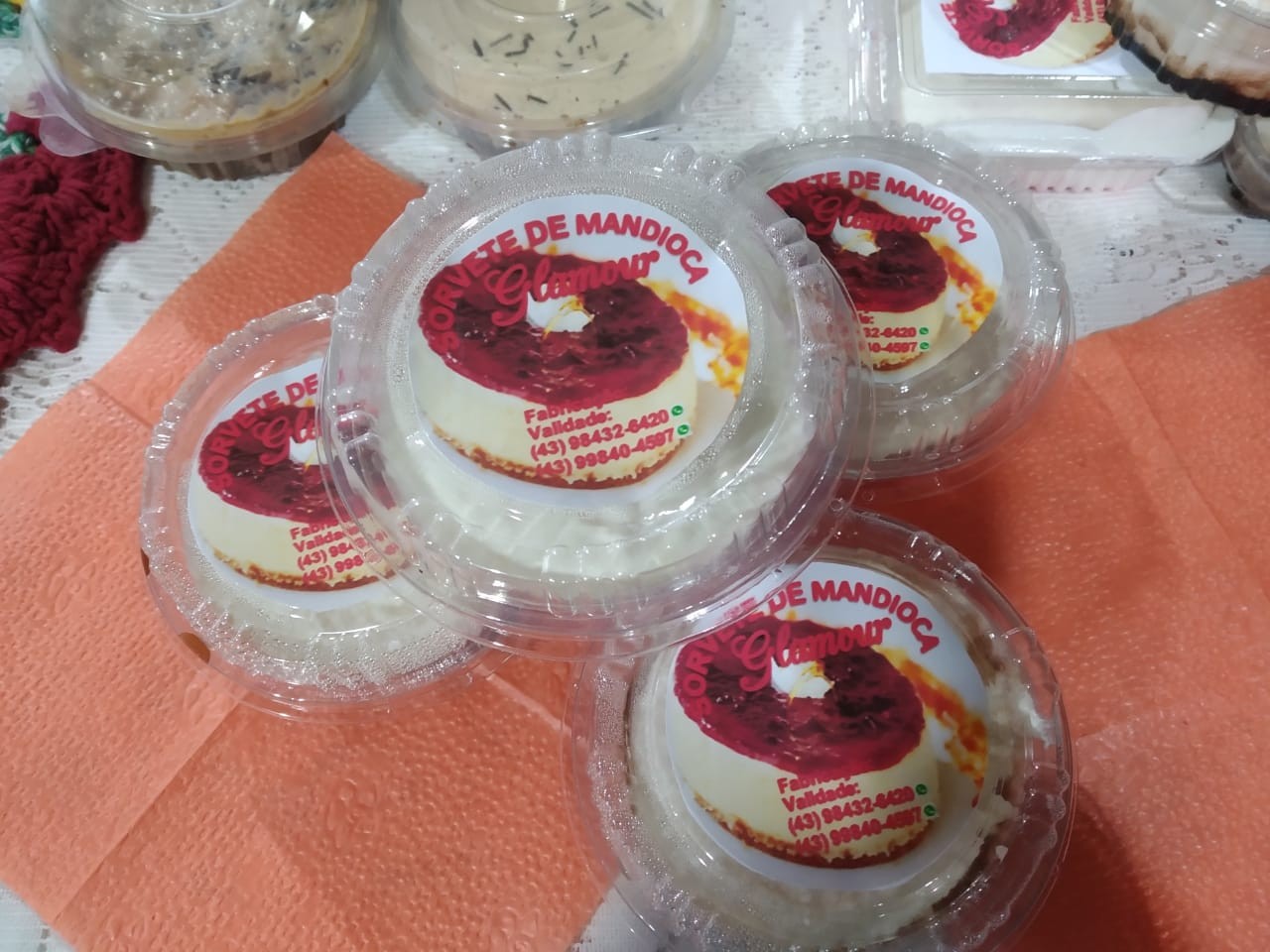 O potinho com 250 gramas pode ser comprado por R$ 5. Também tem uma embalagem com 2 quilos que sai por R$ 35. Além do sorvete, também tem o bombom de mandioca. É uma casquinha de chocolate com recheio do sorvete de mandioca. Cada unidade sai por R$ 3.