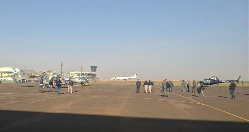 Foram, pelo menos, quatro helicópteros oficiais e um avião oficial de grande porte da Força Aérea Brasileira (FAB) com capacidade para transportar vários passageiros. A aeronave oficial permanece em solo no Aeroporto de Maringá aguardando a volta do ministro.