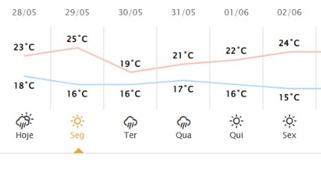 O Instituto Climatempo aponta que para esta semana, a chuva vai ocorrer durante a terça-feira e quarta-feira e quinta. No entanto, mínima prevista é de 14°C.