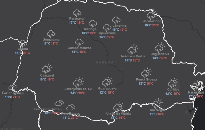 De acordo com o Simepar, a expectativa é de que o tempo volte a ficar estável a partir da sexta-feira, 2. Por isso, entre a madrugada e o amanhecer, o resfriamento deve ser mais significativo. Gradualmente as temperaturas da tarde se elevam com o passar dos dias, com valores mais elevados no oeste e no noroeste paranaense.