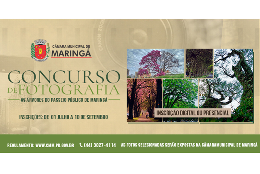 Estão abertas as inscrições do concurso fotográfico “As Árvores do Passeio Público”, realizado pela Câmara de Maringá desde 2014. Em função da pandemia de Covid-19, ele não aconteceu nos últimos três anos.