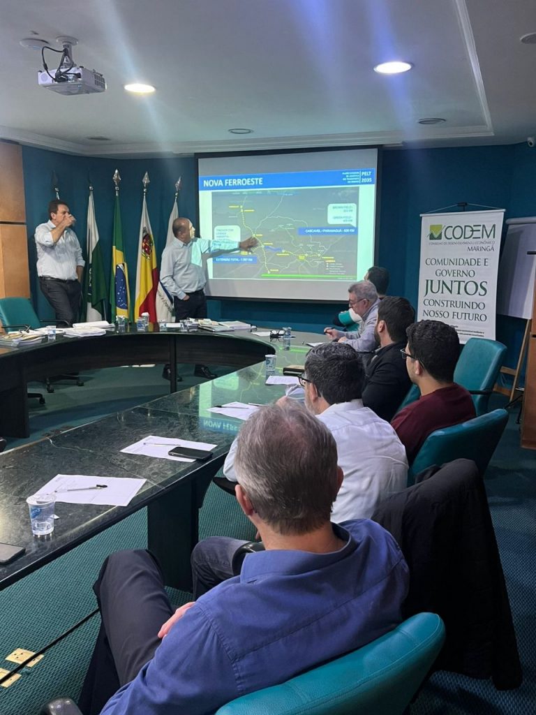 A reunião da Câmara Técnica de Urbanismo do Conselho de Desenvolvimento Econômico de Maringá (CODEM) realizada hoje, debateu os modais logísticos. Presidida pelo conselheiro Marco Tadeu Barbosa, a reunião contou com a presença dos convidados João Arthur, (Gerente de Assuntos Estratégicos da FIEP) e Ricardo Barros, secretário estadual de Indústria Comércios e Serviços, que também participaram da discussão e das deliberações.