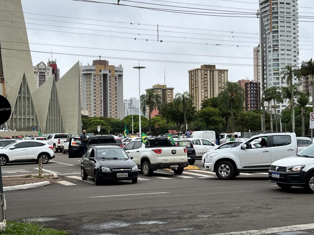 Está acontecendo neste momento uma grande manifestação com carros e motos na praça da Catedral Metropolitana de Maringá. A movimentação, que se iniciou por volta das 14h, tem como finalidade protestar contra o resultado das eleições do último domingo, que declaram Lula (PT) como vencedor.