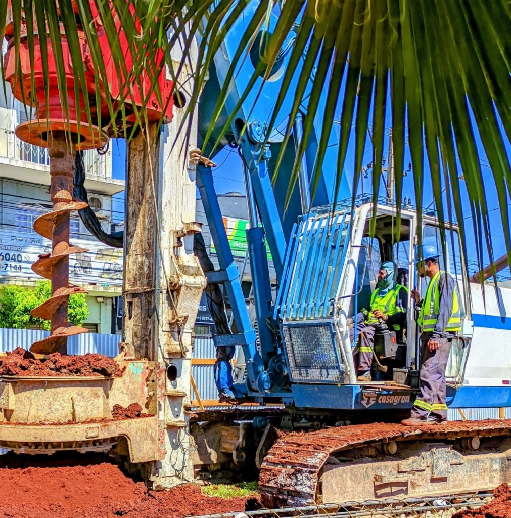 Obras do viaduto seguem com fase de instalação de bases para pilares em Sarandi