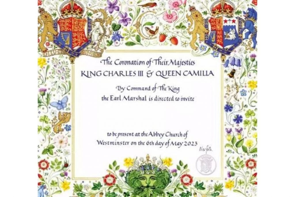 Ilustração do convite da coroação do rei Charles. (Foto: @theroyalfamily/Instagram/Reprodução)