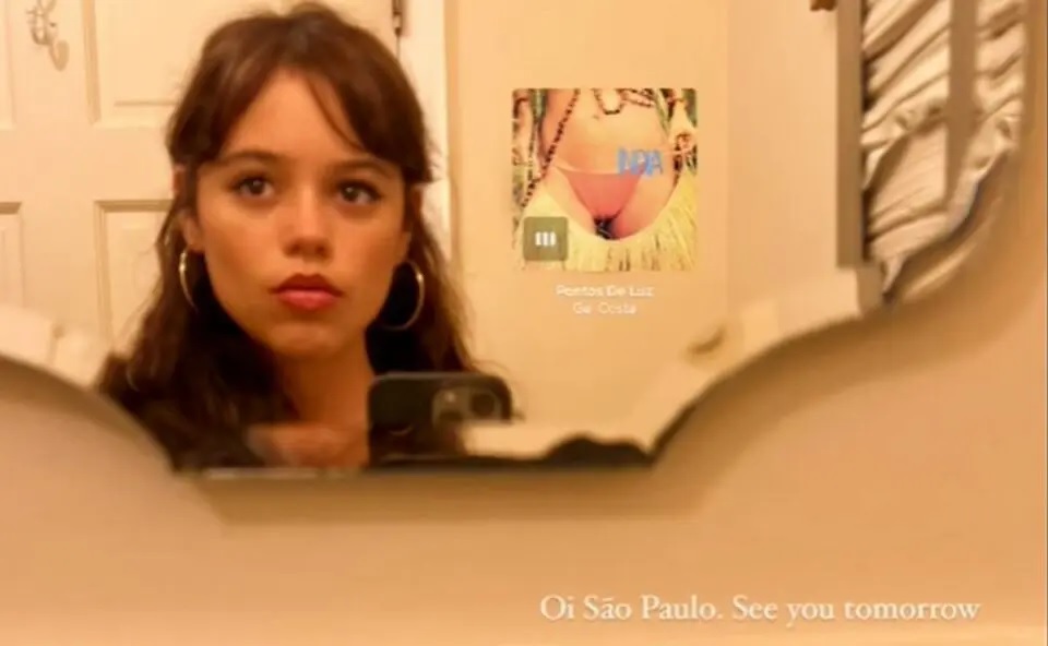 A atriz Jenna Ortega, que interpreta a personagem Wandinha na série da Netflix sobre a integrante da Família Addams, está no Brasil. Nesta sexta-feira, 2, ela postou uma foto com uma música de Gal Costa para dizer que chegou.