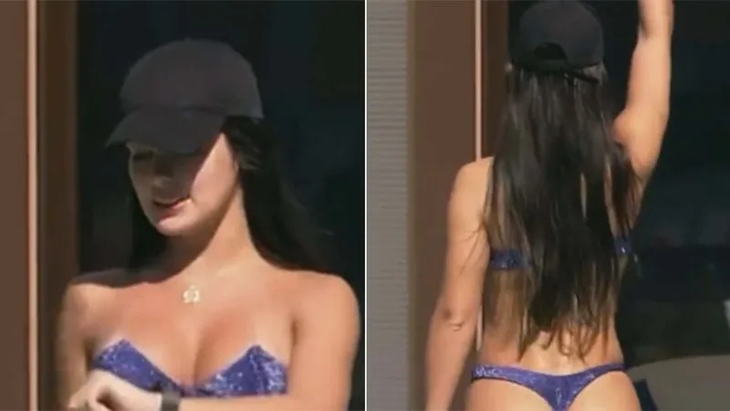 A morena apareceu apenas de biquíni fio-dental sem alças para renovar o bronzeado. Em um momento de diversão, ela até fez uma dança na beira da piscina para ensinar uma coreografia para os amigos.