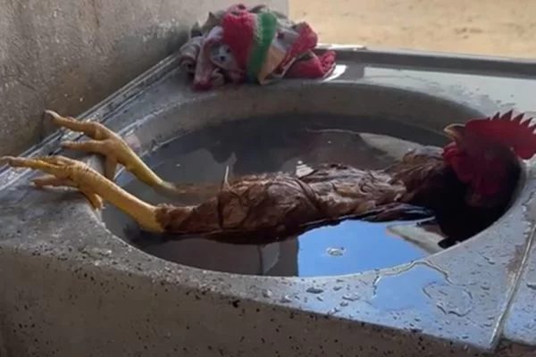 Galo se refresca em pia e viraliza na web: “Relaxando”