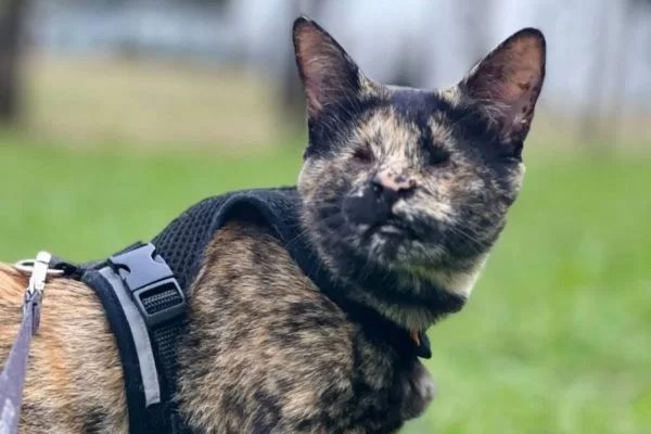 Gata sem olhos que foi resgatada da rua é adotada e vira influencer