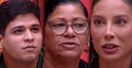 Em seguida, Delma falou sobre Guilherme: “Ele é firme no que faz, vai até o final, luta, não tem medo, encara, vai para cima”, disse. Sobre o ponto fraco, a pernambucana insistiu que também seria o coração, uma vez que o genro teria orientado e ajudado muitas pessoas no jogo. Cutucada por Tadeu Schmidt a entender porque isso seria ruim, a pernambucana falou: “Falar do meu genro é tão difícil, porque eu só vejo amor”.