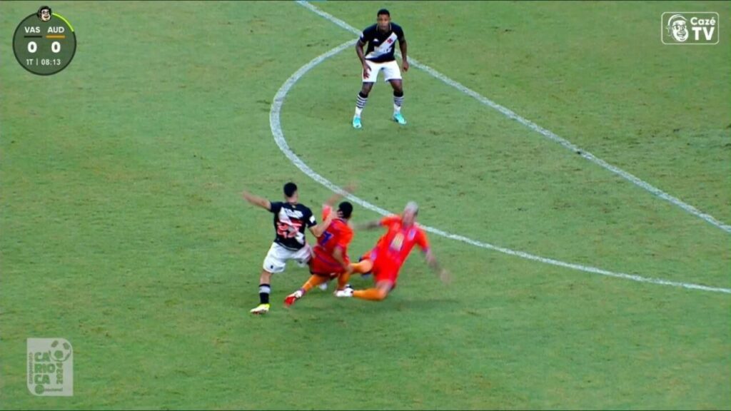 Uma lesão impressionante marca a partida entre Vasco e Audax, em Manaus, em jogo do Campeonato Carioca. O meia Bruno Lima, do Audax, se chocou com outro companheiro, quebrou a perna e acabou deixando a Arena da Amazônia de ambulância.