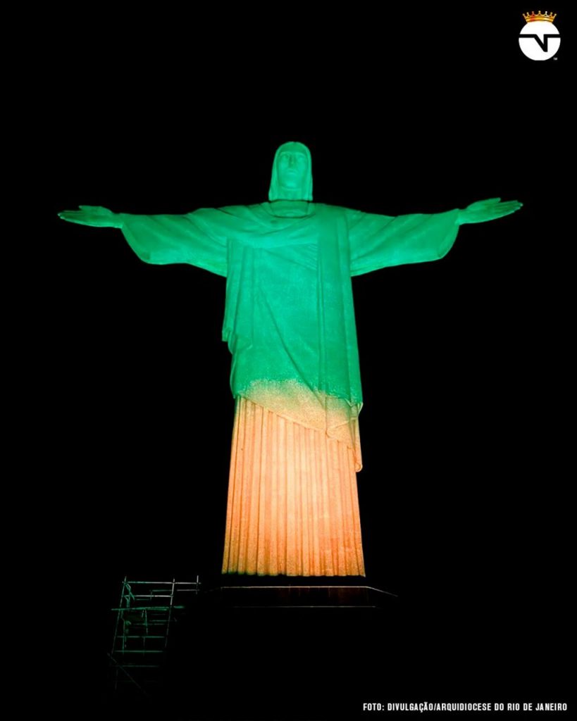 Já no Rio, cidade onde Pelé marcou seu milésimo gol, em 1969, o ponto turístico escolhido para idolatrar o Rei foi o Cristo Redentor, que também foi iluminado de verde e amarelo.
