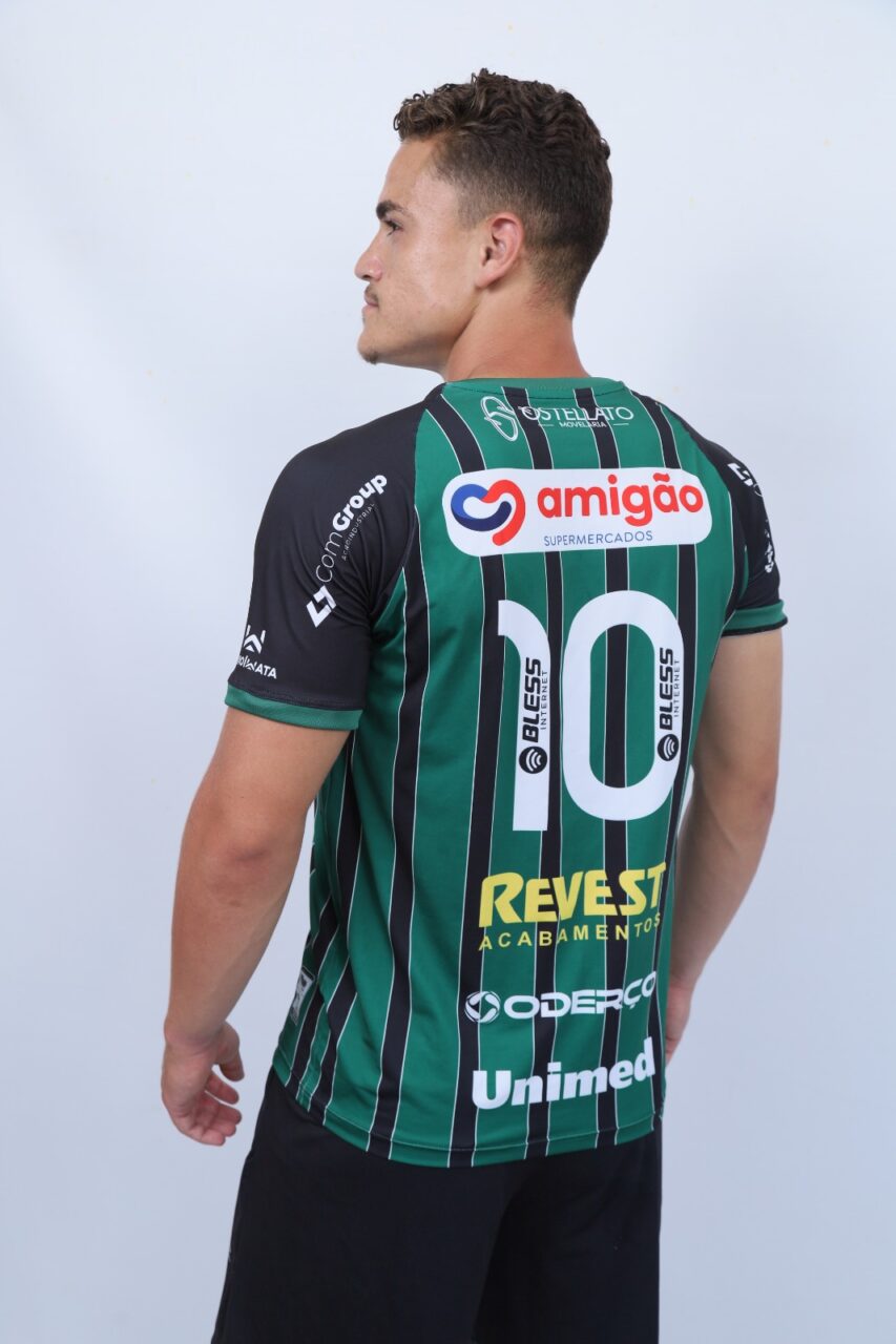 Já o uniforme número 2 traz um resgate mais recente: o acesso à Série C do Campeonato Brasileiro em 2024. O manto traz as listras preta e verde horizontais no peito, mas em uma posição mais baixa em relação à , diferente da referência original. O calção segue branco, também com detalhes tricolores que acompanham as listras da camisa, aplicados na barra traseira.