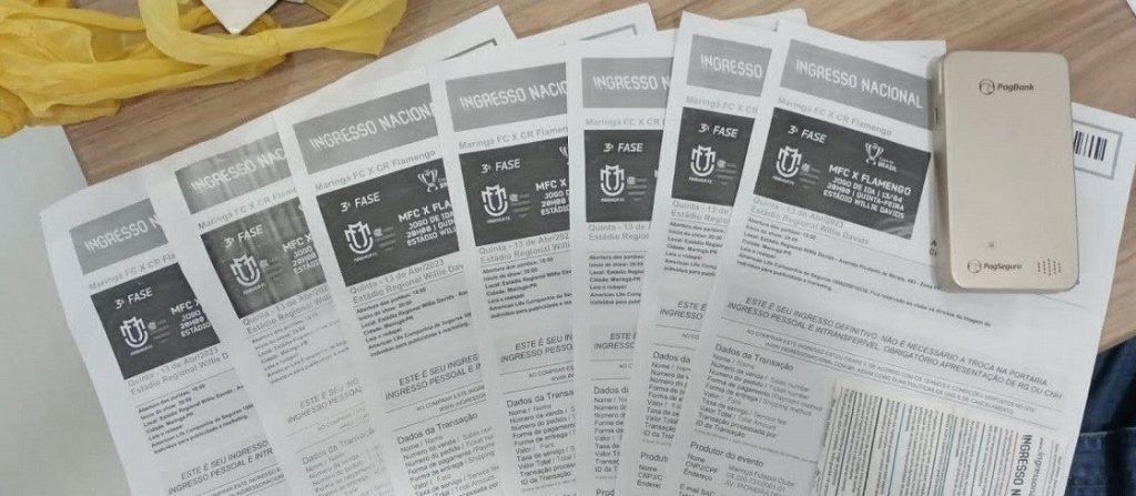 Sete ingressos foram apreendidos e o homem foi levado para a delegacia de Maringá. O artigo 41 do Estatuto do Torcedor aborda a ação de cambistas classificando como “…fornecer, desviar ou facilitar a distribuição de ingressos para venda por preço superior ao estampado no bilhete…”.