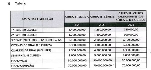 Veja os valores da premiação por fase na competição