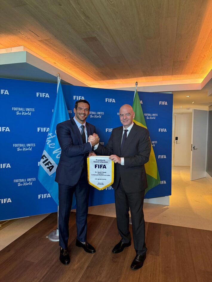 Na sexta-feira, o presidente da CBF, Samir Xaud, teve um encontro com o mandatário da Fifa, Gianni Infantino, em Miami, na Flórida, no qual expressou a vontade de receber o Mundial de 2029 no Brasil.
