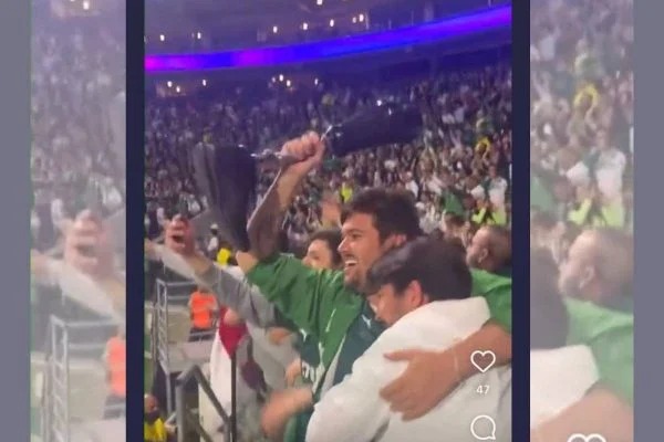 O Palmeiras venceu o clássico contra o Santos nesse domingo, 18, e abriu nove pontos de vantagem na liderança do Campeonato Brasileiro. E um torcedor presente no Allianz Parque, casa do Porco, elevou o nível no quesito comemoração.
