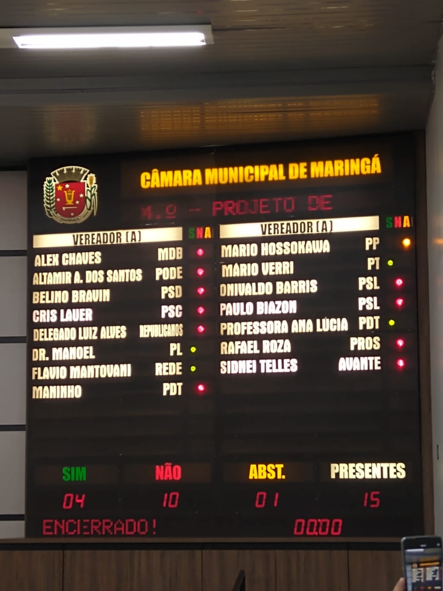 A criação do conselho voltou a ser discutida nesta quinta-feira e, desta vez, foi rejeitada pelos vereadores. 15 parlamentares estavam presentes. 10 foram contrários à proposta, quatro votaram a favor e houve uma abstenção.