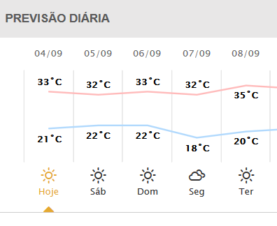 De acordo com Kneib, a massa de ar seco e quente segue predominando em toda a faixa norte do Paraná, por isso os próximos dias continuam sem mudanças. “O calor de mais de 30 °C vai ser registrado em todos os dias e as noites também vão apresentar temperaturas relativamente altas. Nas tardes, além do calor, os índices de umidade ficam baixos, oscilando entre 30 e 40 %”, analisa.