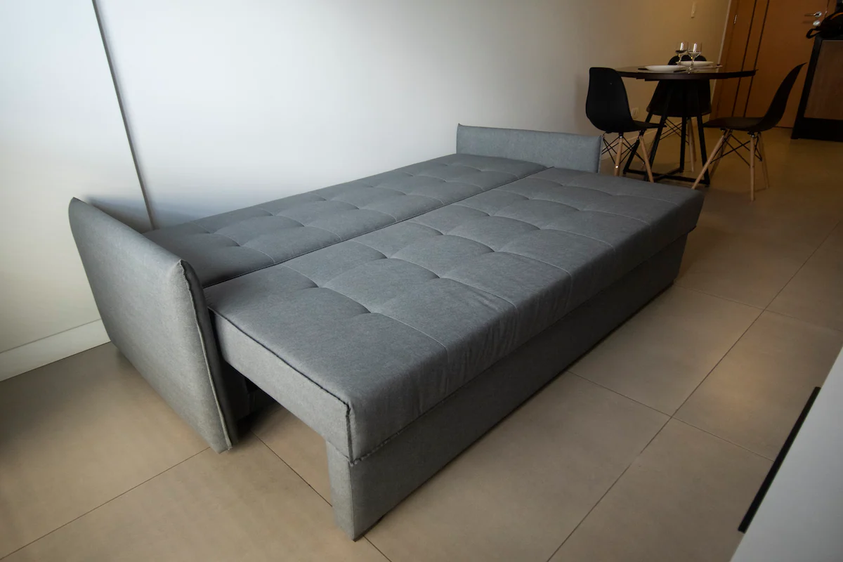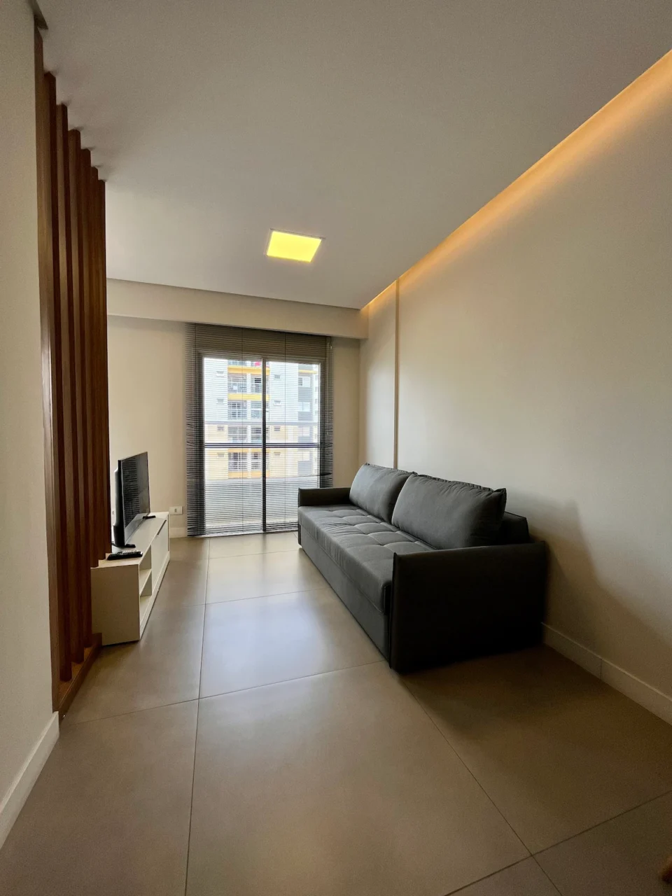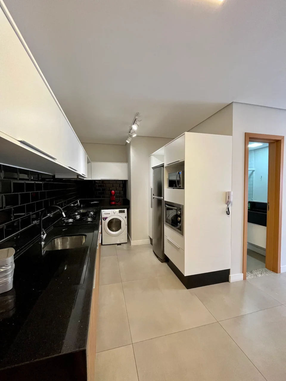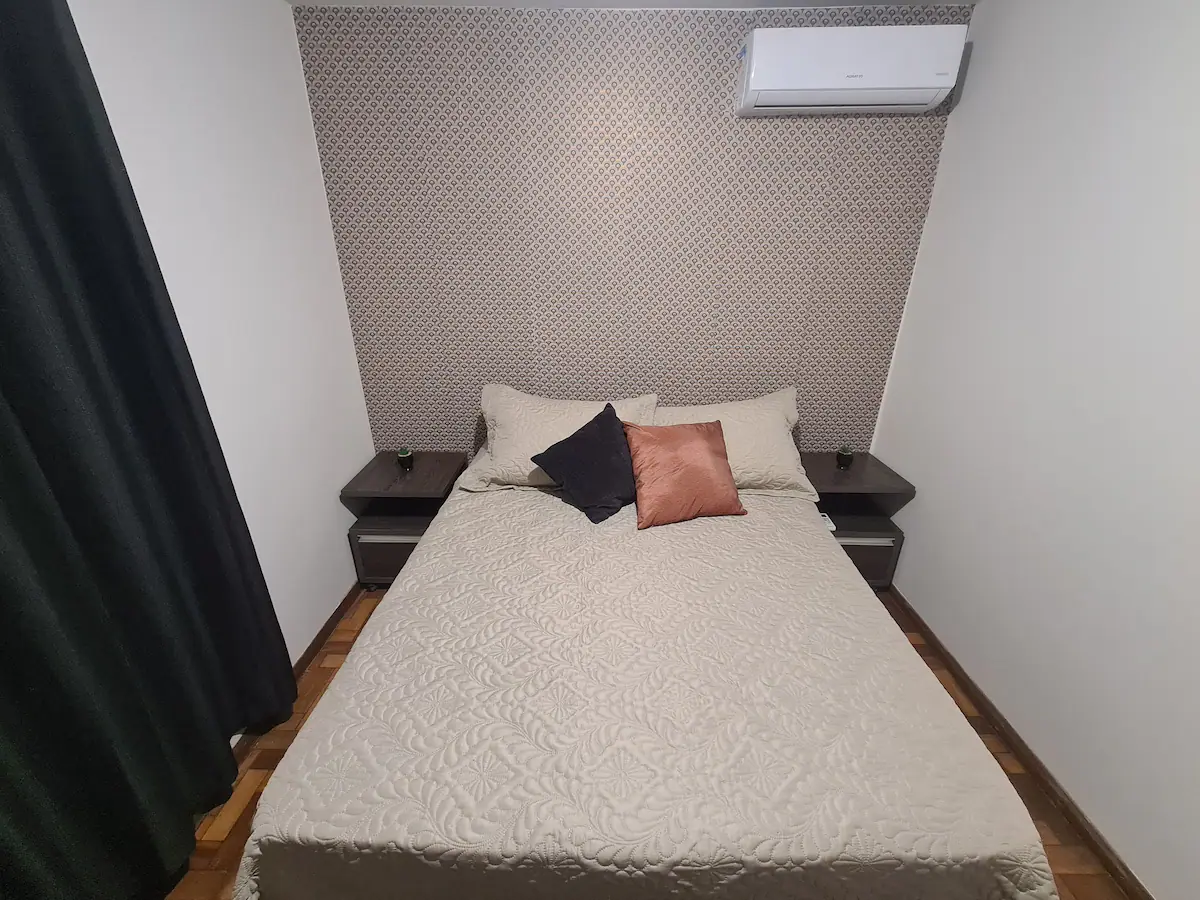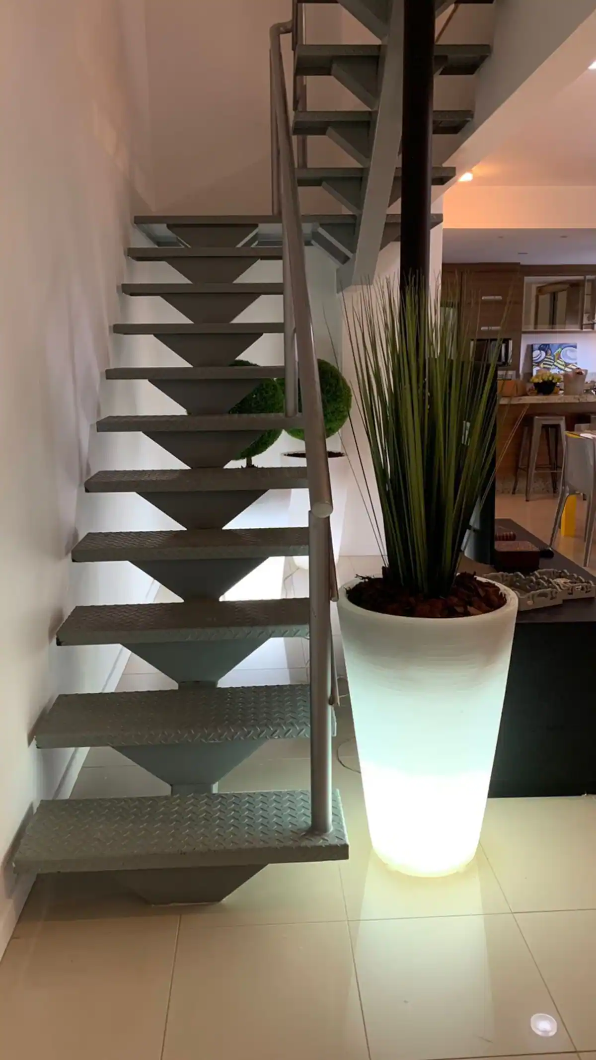 O apartamento é um duplex com sala de tv (smart) com sofá cama, mesa jantar, cozinha, varanda, área de serviço, um quarto (duas camas de solteiro) e uma suíte (cama king e banheira), dois banheiros (um na suíte e outro no primeiro andar). Tem televisão, geladeira, fogão, micro-ondas e utensílios de cozinha, além de ar-condicionado na suíte e na sala.
