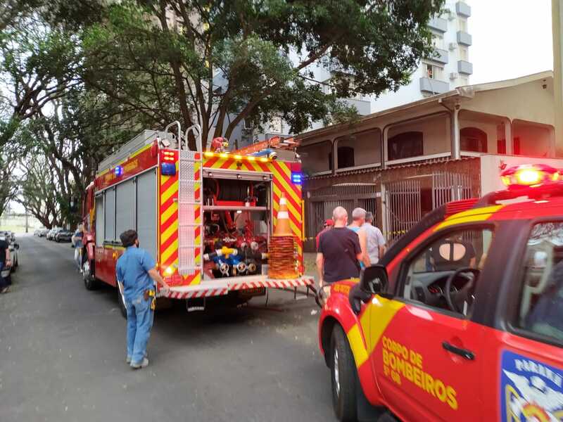 Os Bombeiros de Maringá tentam controlar um incêndio em uma casa na Zona 7, em Maringá, na tarde desta quinta-feira, 26. O fogo atinge uma residência que fica nos fundos de um sobrado na Rua Francisco Glicério. Várias equipes dos Bombeiros estão trabalhando no local.