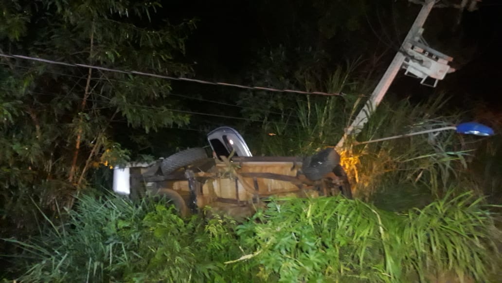 A caminhonete caiu em uma ribanceira e atingiu um poste da rede de energia elétrica. A vítima, segundo informações da equipe do GMC Online que está no local, está consciente e aguardando o resgate. O motorista estaria sozinho no veículo.