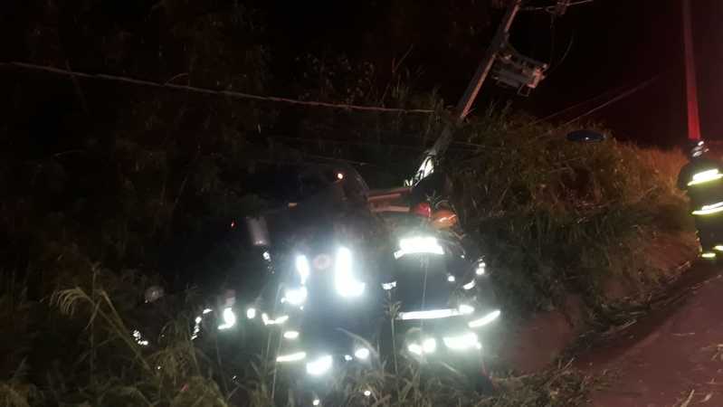Equipes do Corpo de Bombeiros e Samu se mobilizam na noite deste domingo, 19, para resgatar um motorista que se envolveu em um acidente no Contorno Sul de Maringá, perto do Jardim Universo.