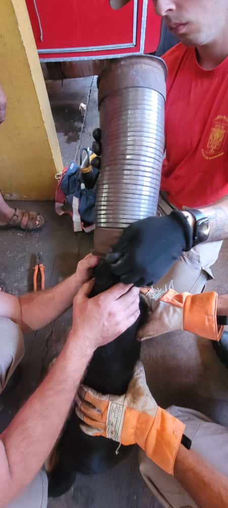 Às 10h40min desta sexta-feira, 6, o Corpo de Bombeiros de Maringá foi acionado por um motivo inusitado: um homem foi até o quartel na praça Geoffrey Wilde Diment, no Maringá Velho, após encontrar a cachorrinha de nome Neguinha com a cabeça presa em um tubo metálico na oficina mecânica em que ela mora.