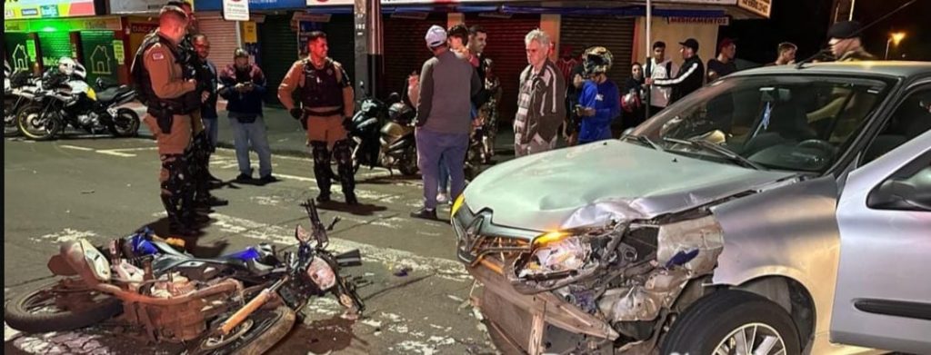 O motoboy, de 21 anos, seguia no sentido bairro, quando a motorista de um Renault invadiu a preferencial e causou o acidente.
