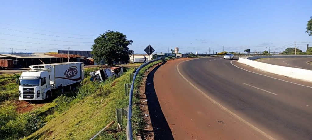 Por volta das 4h30 da manhã desta sexta-feira, 23, um caminhão do tipo frigorífico, que carregava uma carga de carnes, tombou às margens da rodovia PR-323, próximo ao Parque Itaipu, em Maringá.