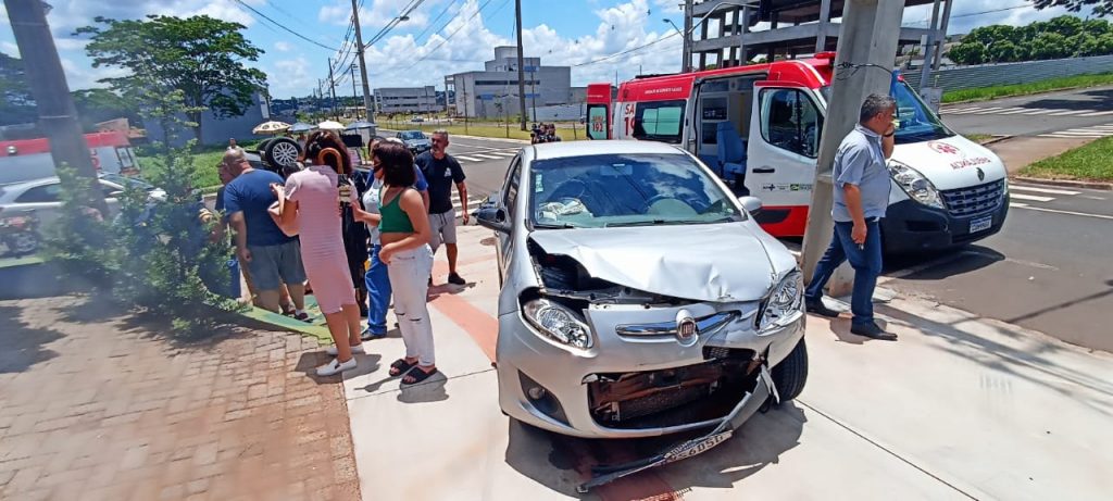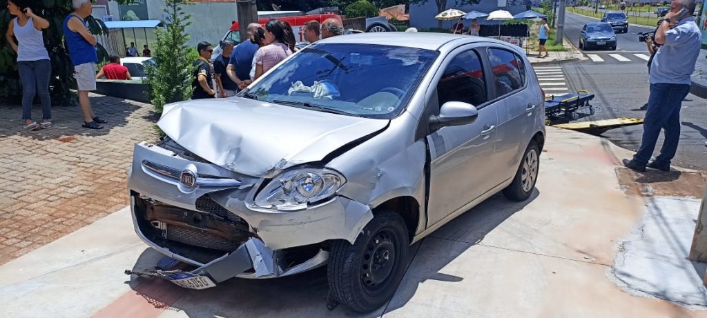 O Fiat/Palio também trafegava pela avenida, na direção contrária. O sinal estava aberto para a condutora do Palio, que não conseguiu parar a tempo e bateu na lateral da Spin.