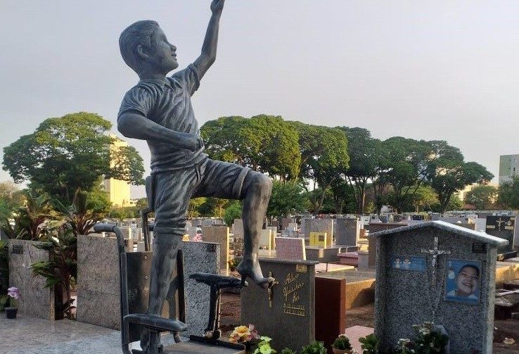 A estátua é uma obra do artista plástico Lucas Fioresi, que simboliza a liberdade de menino que viveu ‘preso’ a uma cadeira de rodas. Desde então o túmulo segue sendo um dos mais visitados.