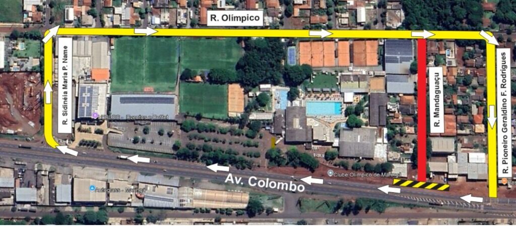 Os motoristas que acessam a Rua Mandaguaçu pela Avenida Colombo para retornar para Maringá deverão realizar o acesso pela Rua Sidinéia Maria Portes Name, seguir pela Rua Olímpico e retornar pela Rua Pioneiro Geraldino F. Rodrigues (rota indicada para veículos leves).