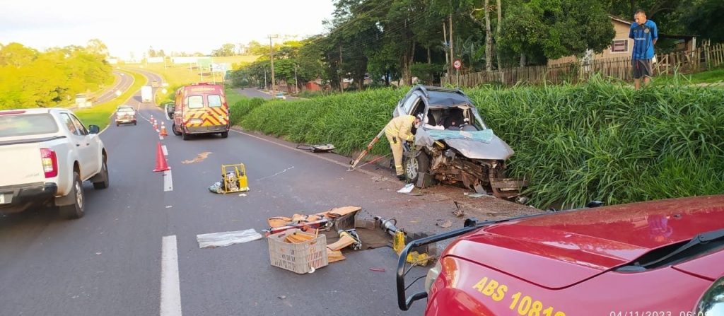 Duas pessoas ficaram feridas em acidente na BR-376 na manhã deste sábado, 4, próximo ao trevo de retorno de Iguatemi, distrito de Maringá.