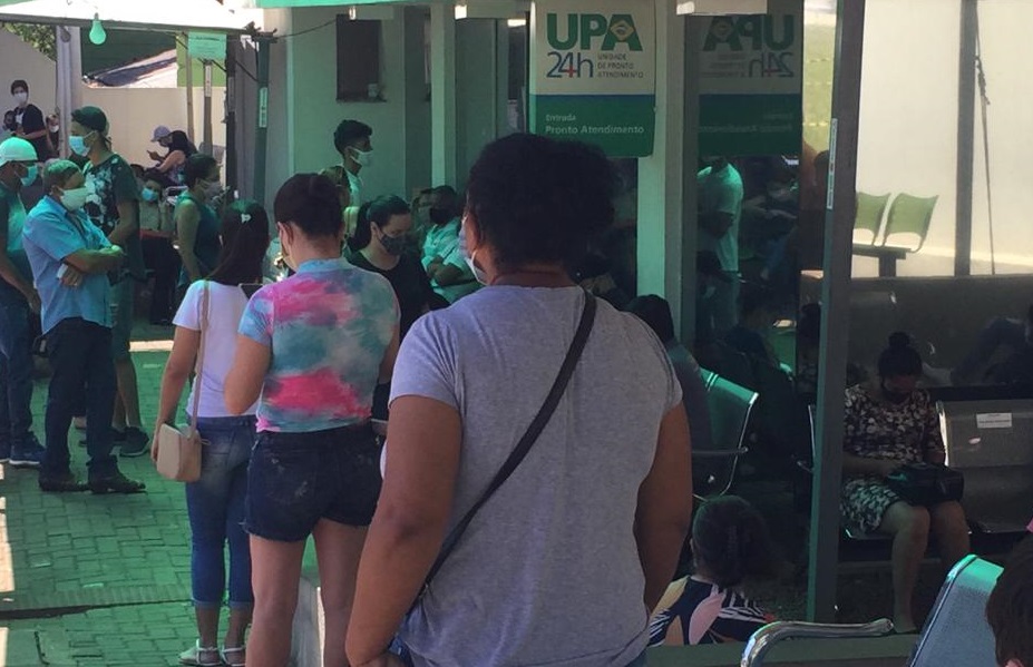 No saguão de entrada, todas as cadeiras ocupadas. Também transformada em sala de espera, a frente da UPA estava lotada e do lado de fora mais gente. O paciente Lucas Brito procurou atendimento pela segunda vez na unidade. Ele afirmou que a fila ia longe.