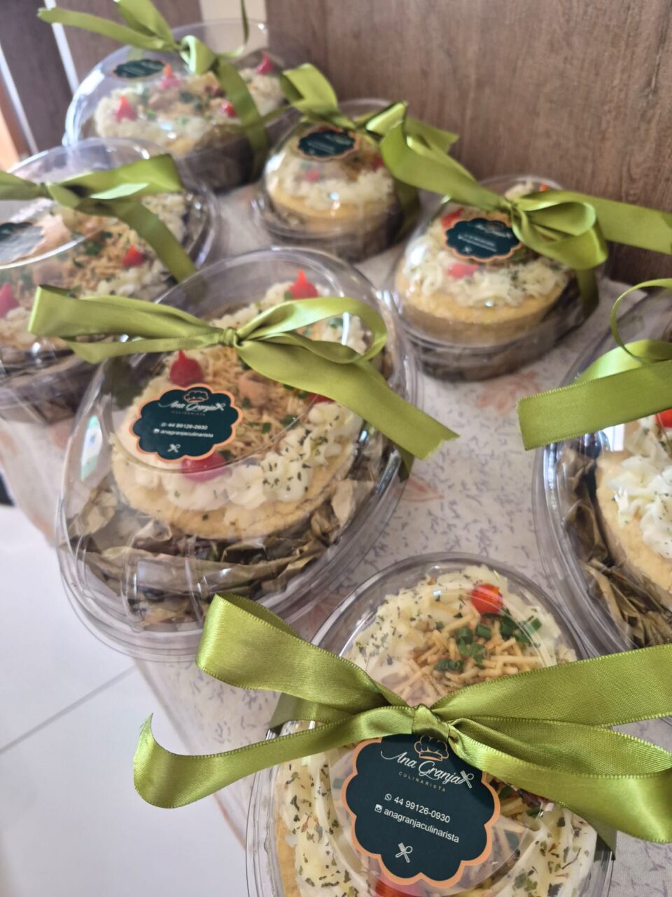 Durante a Páscoa, Ana Granja cria o Empadovo, um ovo de empadão de frango que combina criatividade e sabor. O preparo leva cerca de três horas e inclui recheio cremoso, batata palha, pimentinhas e azeitonas. Disponível em quatro sabores salgados, o Empadovo ganhou destaque em Maringá por sua apresentação e decoração diferenciadas. “Mudei a embalagem para o formato oval, que acomoda melhor o empadão e mantém a integridade do produto. Coloco papel seda, decoro e entrego frio, pronto para presentear”, detalha a chef.
