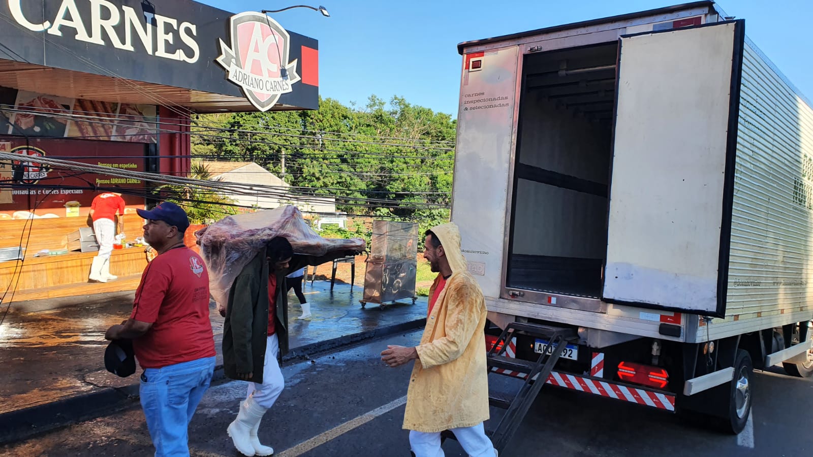 Uma parte do estoque não foi possível levar estragou ao ficar sem refrigeração no interior do açougue. Os danos não foram só em carnes, mas também em sorvetes e outros perecíveis que são sensíveis a altas temperaturas, “Estou contabilizando uns 2 mil quilos de carne que vão ser jogados fora. Uma parte eu já descartei. Além de tudo, o poste ainda caiu em cima do meu carro”, ressaltou Adriano.