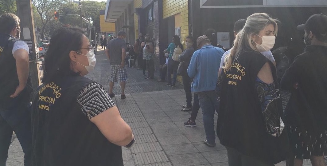 Equipes do Procon e do Grupo de Gestão Integrada (GGI) da Prefeitura de Maringá realizaram na manhã desta quarta-feira, 2, uma fiscalização que flagrou irregularidades em filas de banco na cidade. Entre as situações averiguadas pelos agentes, estava a falta de triagem para atendimento, longas filas sem distanciamento, idosos nas filas sem prioridade, entre outras situações.