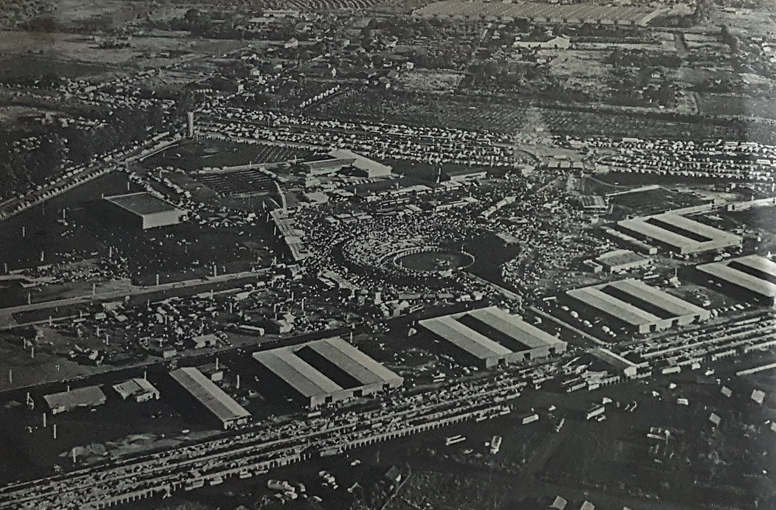 Vista aérea da I Exposição-Feira Agropecuária e Industrial de Maringá (EXPOFEMAR), realizada em 1972 no então Parque de Exposições Pres. Emílio Garrastazu Médici.