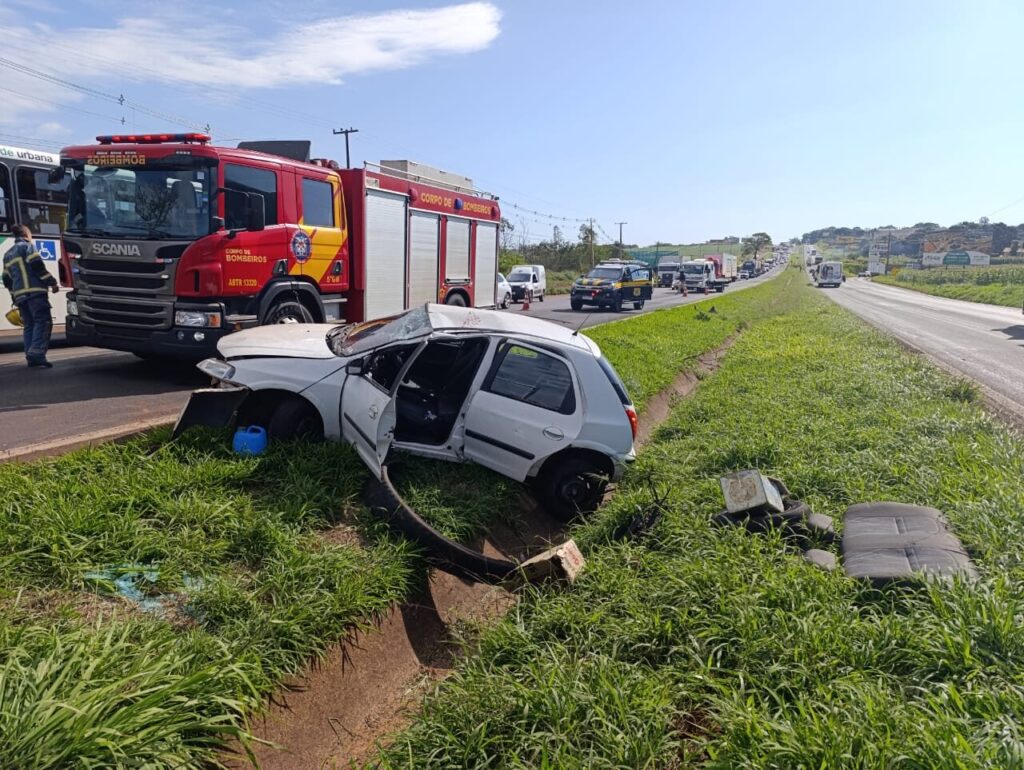 Idoso de 87 anos é socorrido em estado grave após capotar carro na BR-376, em Maringá