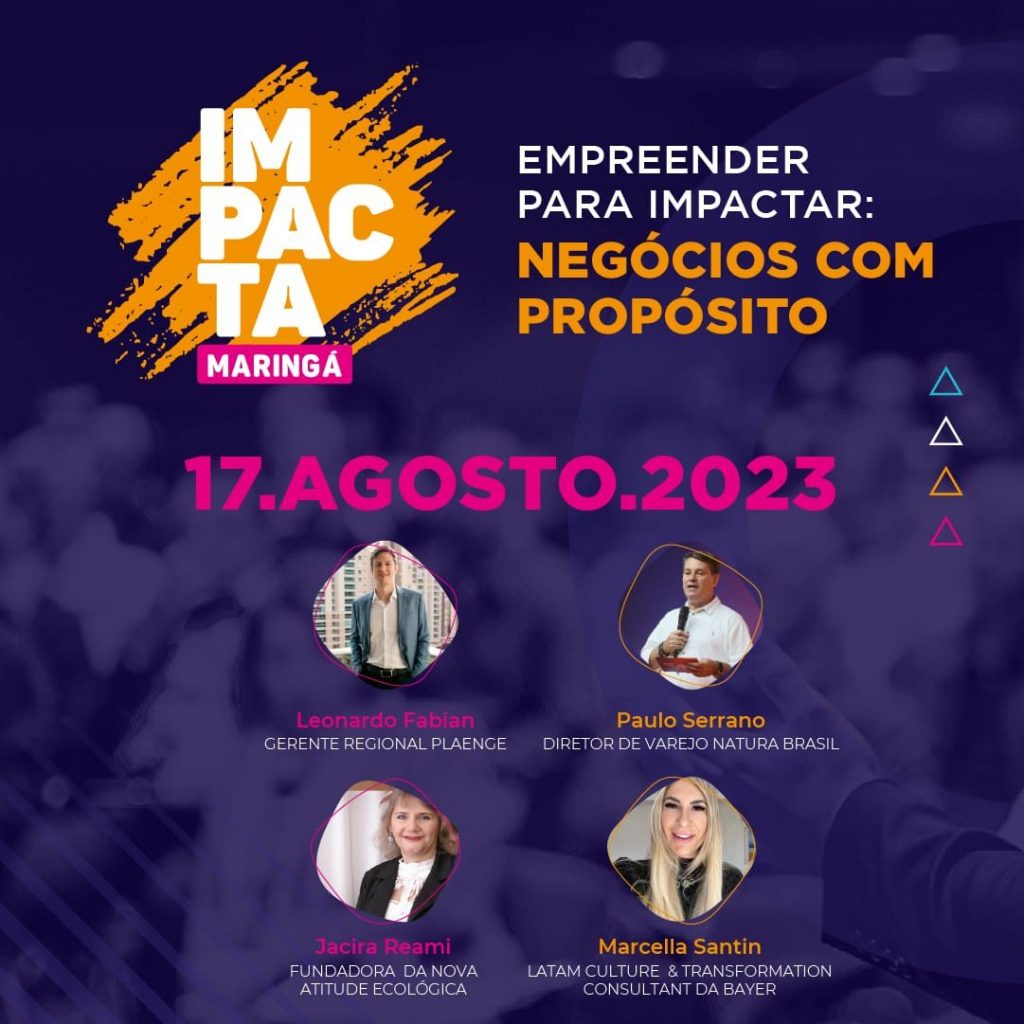 A sexta edição do Impacta Maringá deverá reunir 900 pessoas para assistir às palestras sobre negócios que aliam resultado financeiro e sustentabilidade. Será em 17 de agosto no Teatro Marista, com a doação de um livro como entrada ou R$ 10 (valor usado para a compra de livros) – a inscrição deve ser feita neste link. Depois, as doações serão disponibilizadas em estantes do projeto Ler Mais para empréstimo à população.