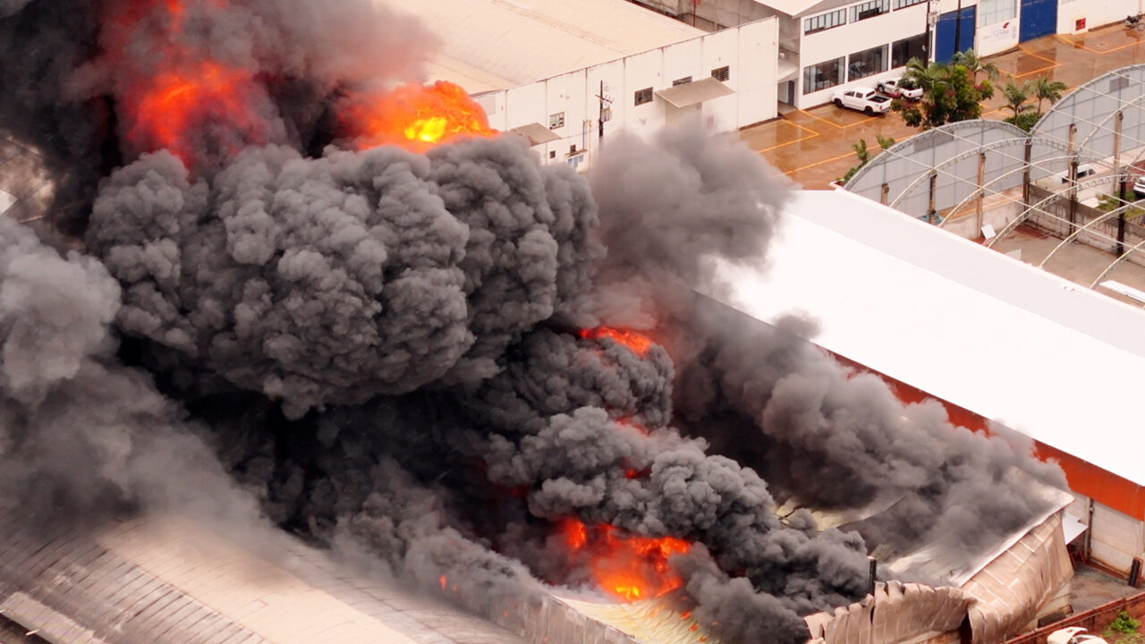 Incêndio em fábrica de peças de caminhão em Maringá é controlado, mas barracão apresenta risco de colapso