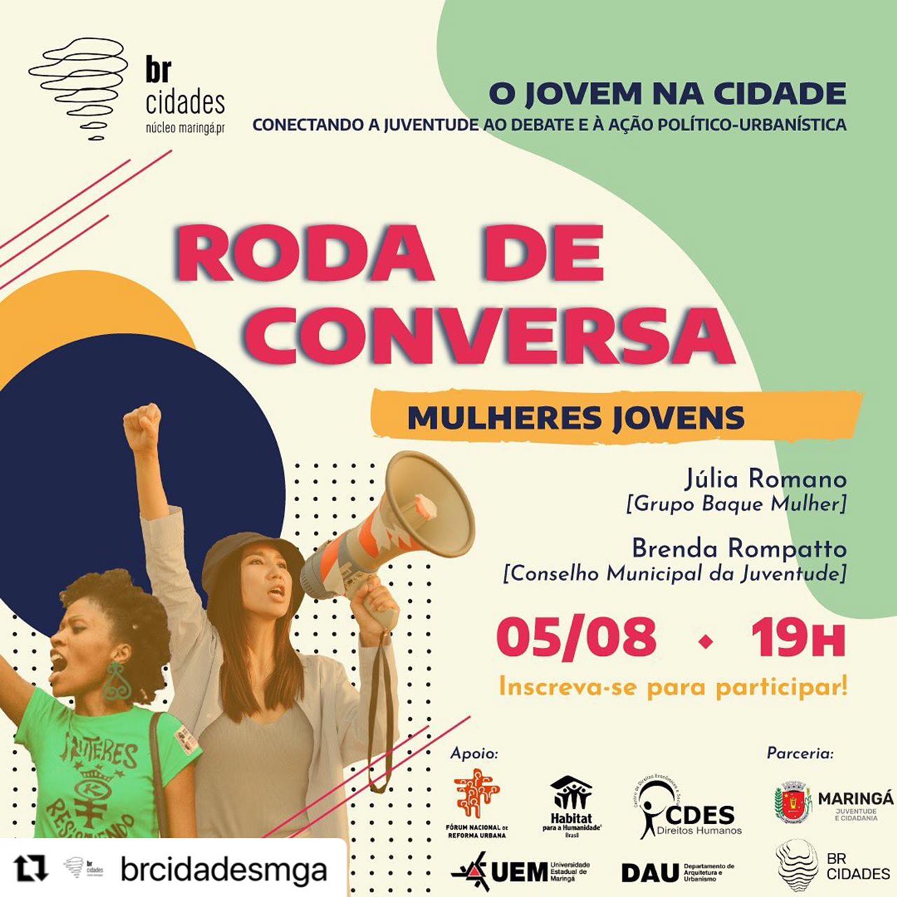 O projeto Roda de Conversa é desenvolvido pelo Núcleo Maringá do BR Cidades, que é um grupo de pesquisadores, profissionais e movimentos sociais com o objetivo de construir coletivamente cidades mais justas, solidárias e sustentáveis.