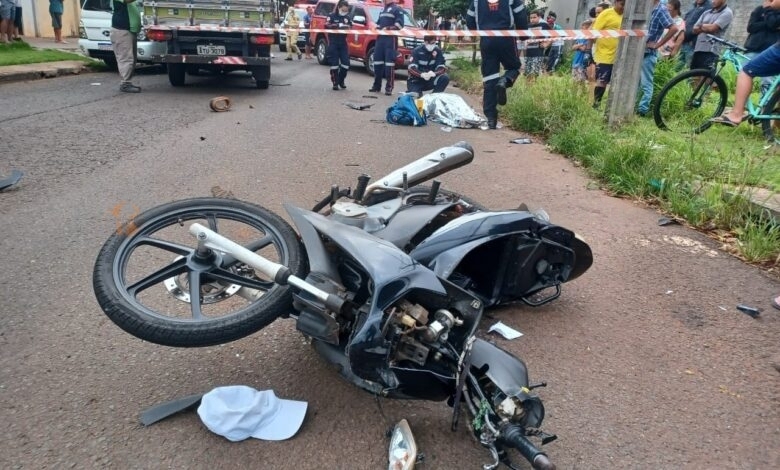 Um motociclista morreu após colidir contra um caminhão na Rua Ema, no bairro Jardim Olímpico na tarde desta sexta-feira, 3, em Maringá.