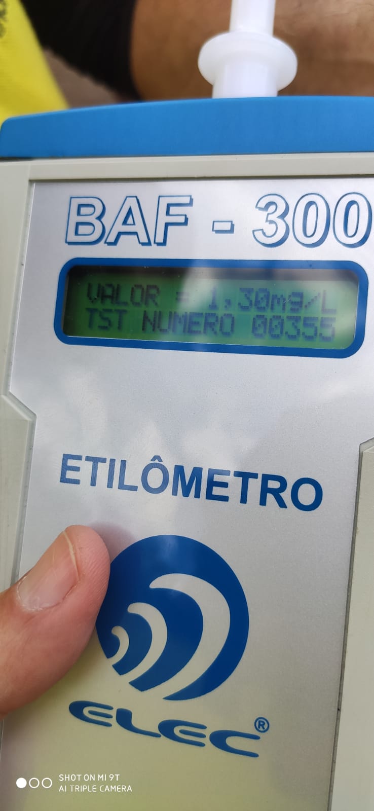 O motorista ligou o carro e saiu dirigindo segundos antes das equipes chegarem no local. Mesmo assim, ele foi acompanhado e preso logo em seguida. O teste de bafômetro apontou 1,30 miligramas de álcool por litro de ar (a tolerância, por causa de uma margem de erro do equipamento, é de 0,04 mg/L). Por isso, o motorista foi preso em flagrante. Apesar de dizer que estava bem, um vídeo feito por pessoas que passavam pela avenida mostra que o motorista teve dificuldade até mesmo para assoprar o bafômetro.