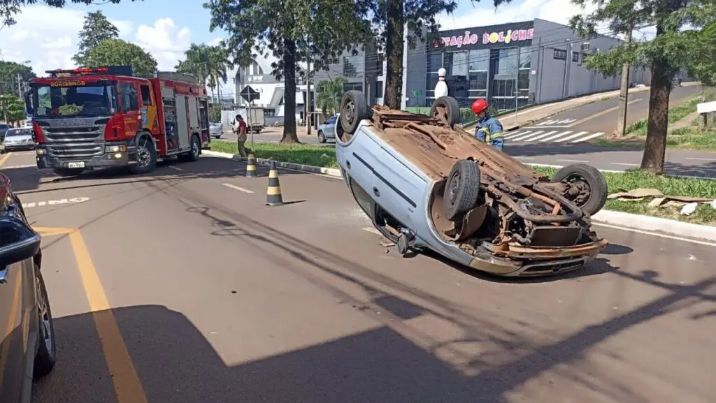 Motorista é socorrido após capotar carro em avenida de Maringá